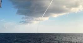 Brave sailors capture dramatic footage of 'water tornado' heading straight towards their ship A massive 'water tornado' swirling above the sea was captured in dramatic footage by two brave sailors - as it headed straight towards their ship.