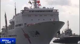 "Peace Ark" docked at Dar es Salaam port, Tanzania, offering medical services aboard and in local clinics.